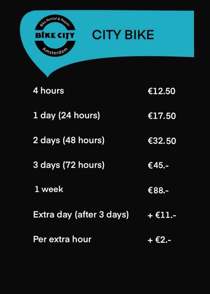 You don't need to know how long you're going for, just start riding and keep us posted if you plan to stay on the road for longer. The price gradually decreases after 3 days to €10 per 24 hours. We offer an insurance, that covers theft and damage, for €3.50 per day. We recommend getting it. Not so much for theft, the 2 locks provided are sufficient if used properly, but more for damage. Damage caused by yourself or others. *Note: the insurance doesn't cover reckless riding or theft due to leaving the keys in the bike. If your bike falls in the canal, make sure you get it out. If you have a special requests or any further inquiries regarding please use the 'contact page' to send us an email. Check your size here: Size Table Check here: How does it work? Check here: Rental Conditions